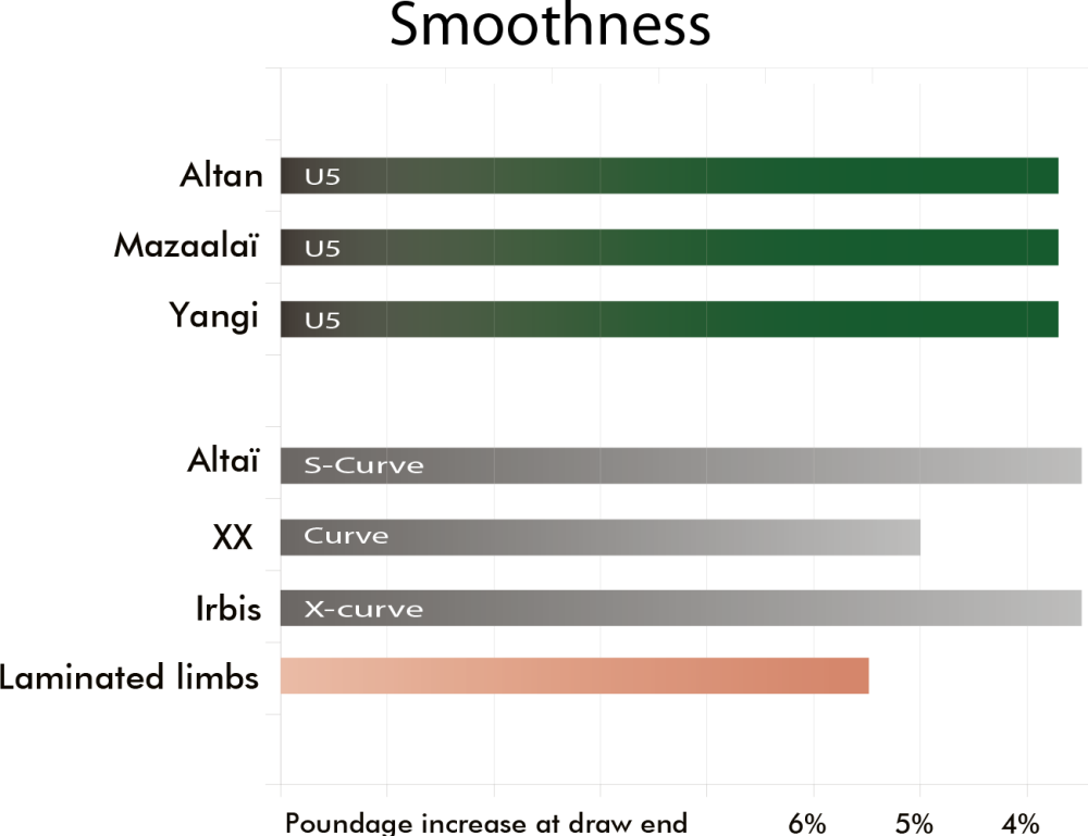 Curba placuta a puterii arcului este cea care aduce un confort placut la intinderea acestuia. Acest lucru ajuta la tragerea multor sageti prin mentinerea tehnicii corecte, ca si cum ati folosi un arc cu putere mai mica.