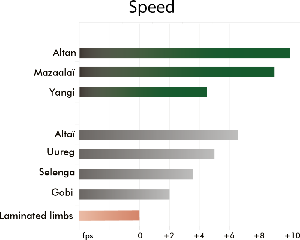 Realizate din 90% fibra de carbon si 10% fibra de sticla, bratele MAZAALAÏ (numele ursului din Gobi) sunt fuziunea perfecta intre maiestrie, confort si precizie.