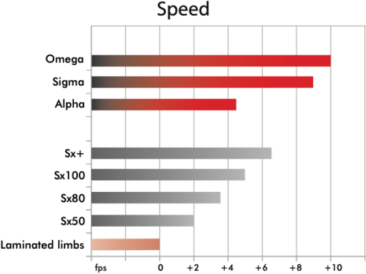 Cu bratele OMEGA, nu exista compromisuri: bucurati-va de un efort liniar de intindere, un confort incomparabil la intindere completa, stabilitate perfecta, viteza impresionanta a sagetii, precizie exceptionala si, mai presus de toate, placerea de a trage fara egal.