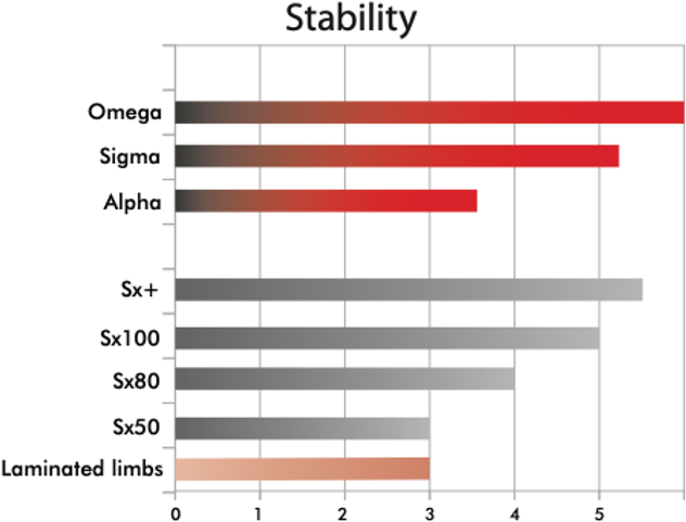 Fabricate din fibra de carbon 100%, bratele OMEGA prezinta cele mai performante, usoare si rezistente tesaturi de carbon de inalta calitate. Ele mentin aceeasi stabilitate ca modelul Sx+, adaugand in acelasi timp un plus de viteza.